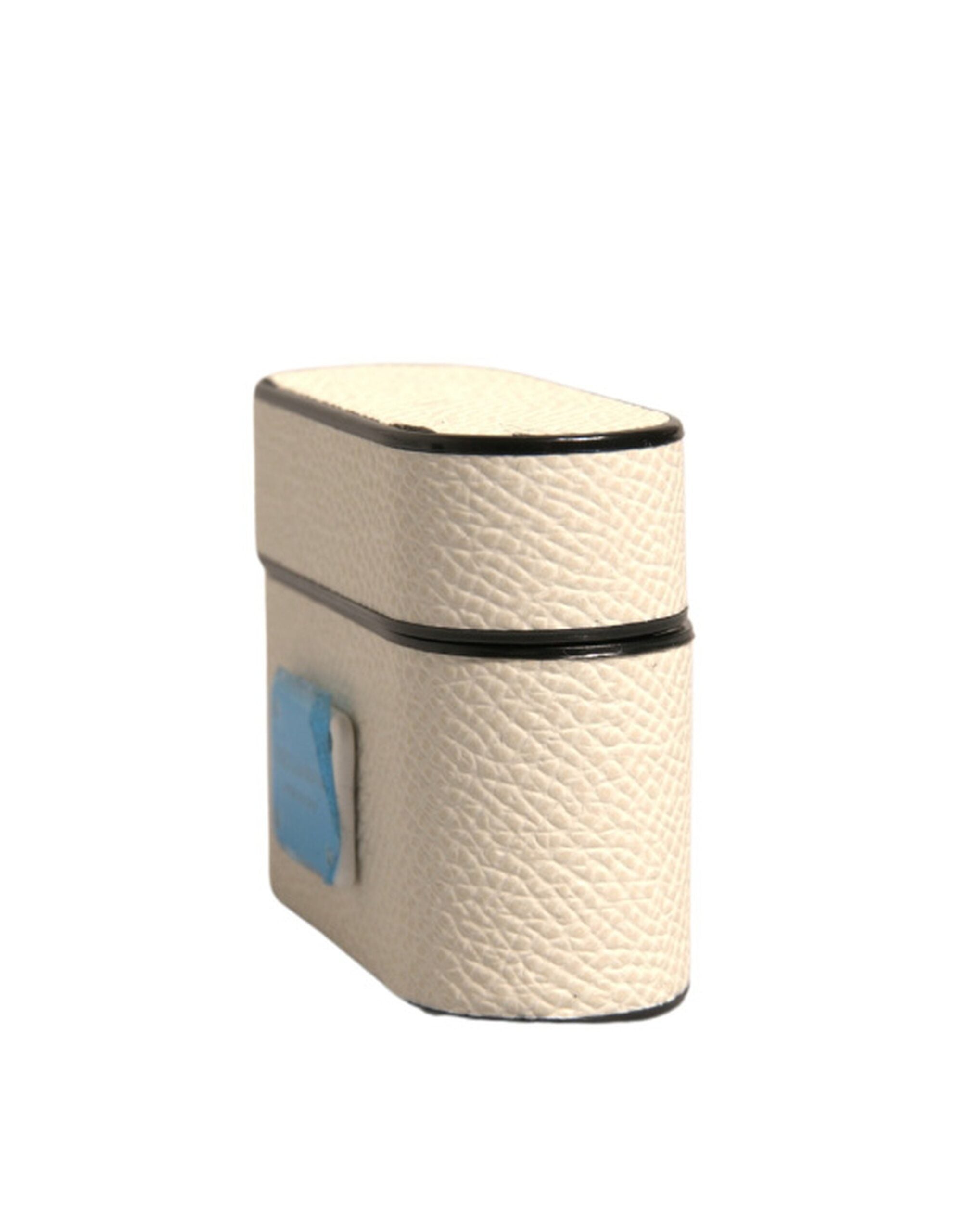 Dolce & Gabbana White Leather Metal Logo Plaque Holder Airpods Case -